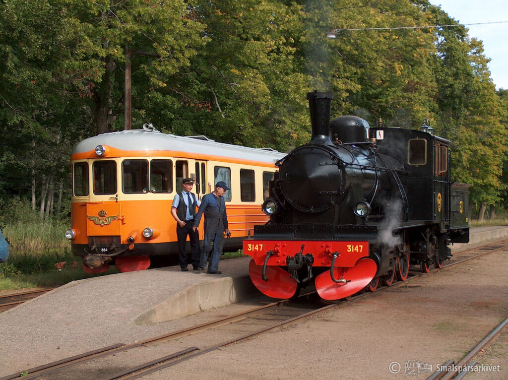 SJ L18p 3147 (NVHJ 22) i Verkebäck. Vid loket Herbert Paalberg och Robert Karlsson.