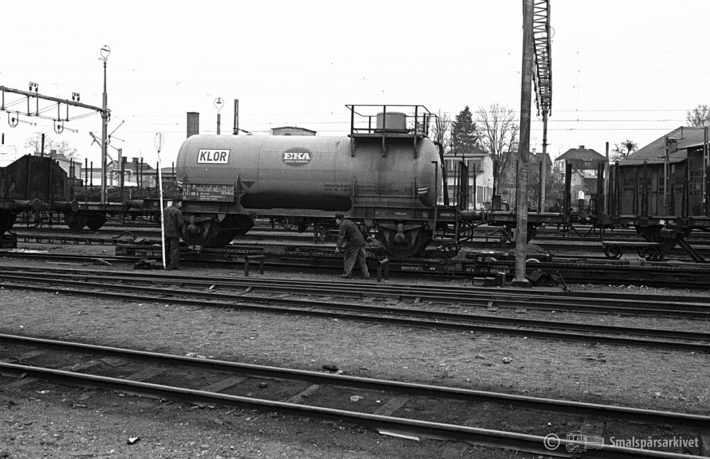 Cisternvagn SJ Uh 21 74 070 1180-8 från EKA rampas på överföringsvagn i Växjö.