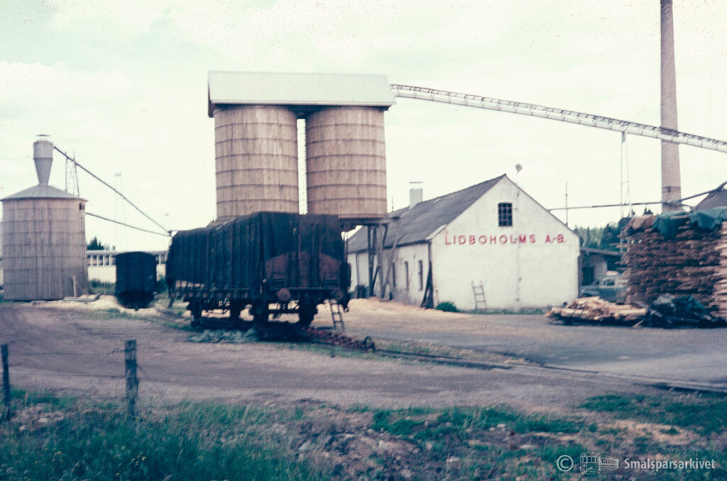Till vänster ses industrispåret till Lihnells Vagn AB, LIVAB, i Braås. Spåret till höger är linjen norrut mot Sandreda. Foto från slutet av 1960-talet.