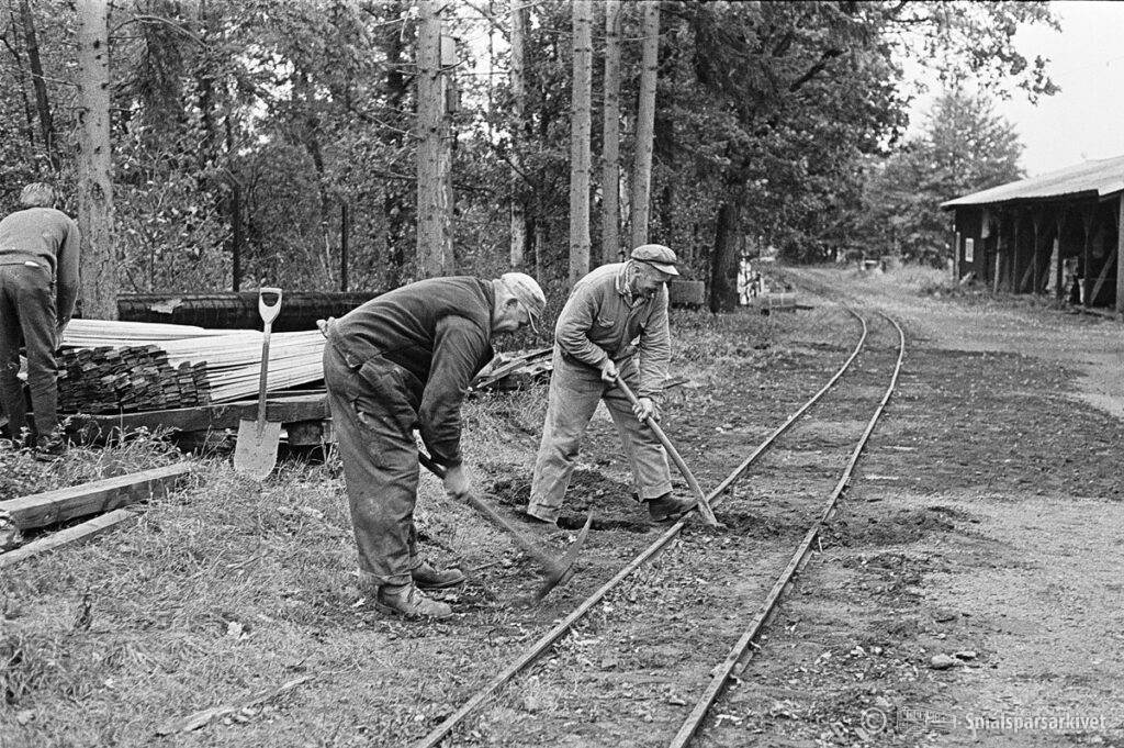 Böksholms bruks lokomotor KVAB 88/1951 växlar ankommande vagnar i Braås.