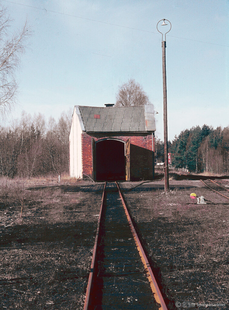 Lokstall och vändskiva för smalspåret i Berga.