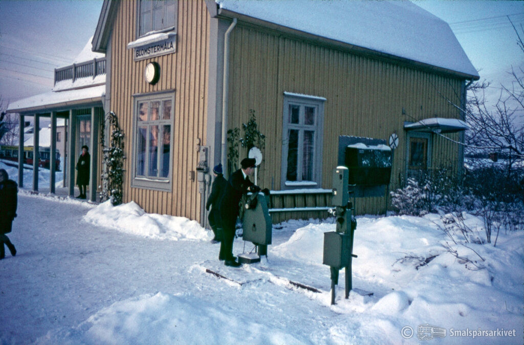 Tågklareraren vid stationen i Blomstermåla.