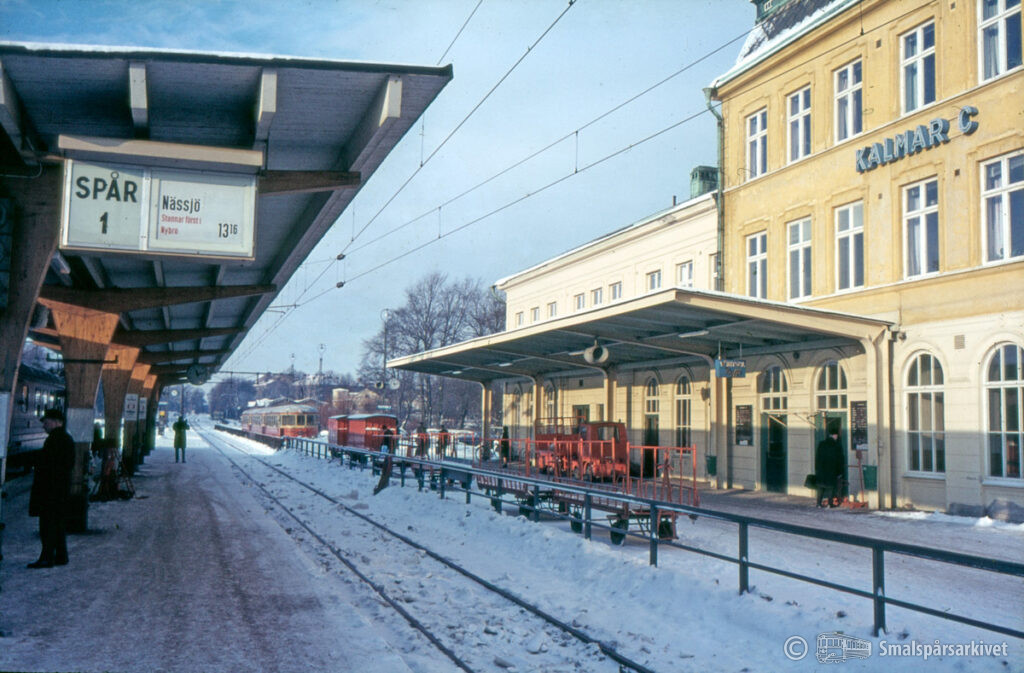 Stationshuset och spår 1 på Kalmar Central. bakgunden ses YBo5p 804.