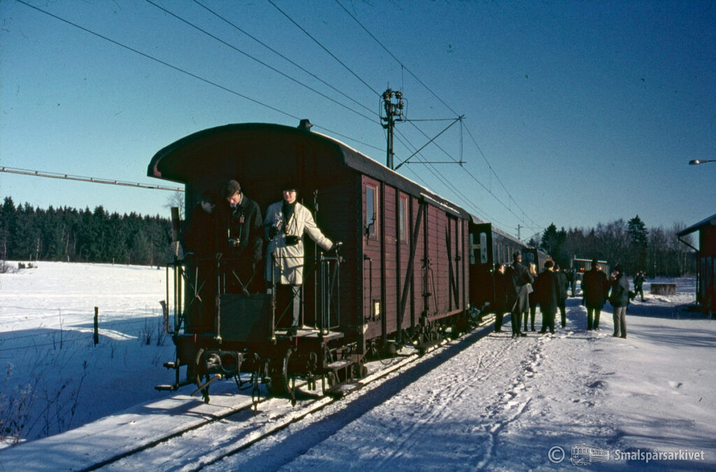 SJK:s utfärdståg vid Malsta hållplats. Sist i tåget går resgodsvagn SJ Fp 165 (f.d. SRJ F 232).
