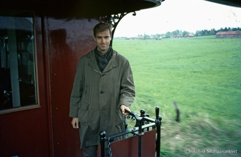 Gunnar Blumenberg på öppen plattform mellan Nossebro och Brobacka.