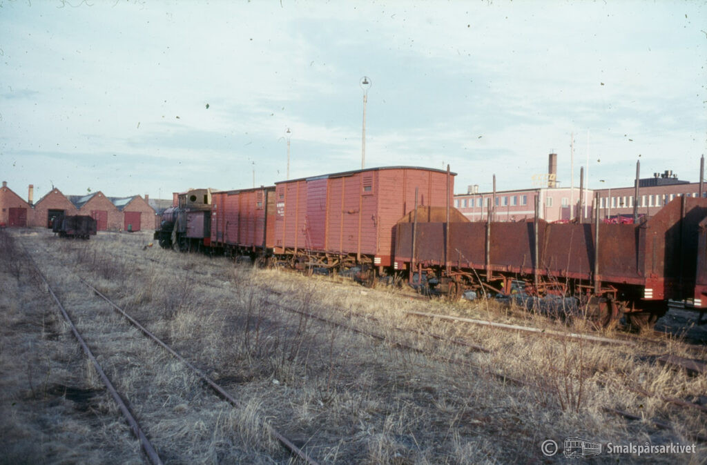 Ånglok VGJ 29 (SJ Gp 3119) och godsvagnar i Skara.