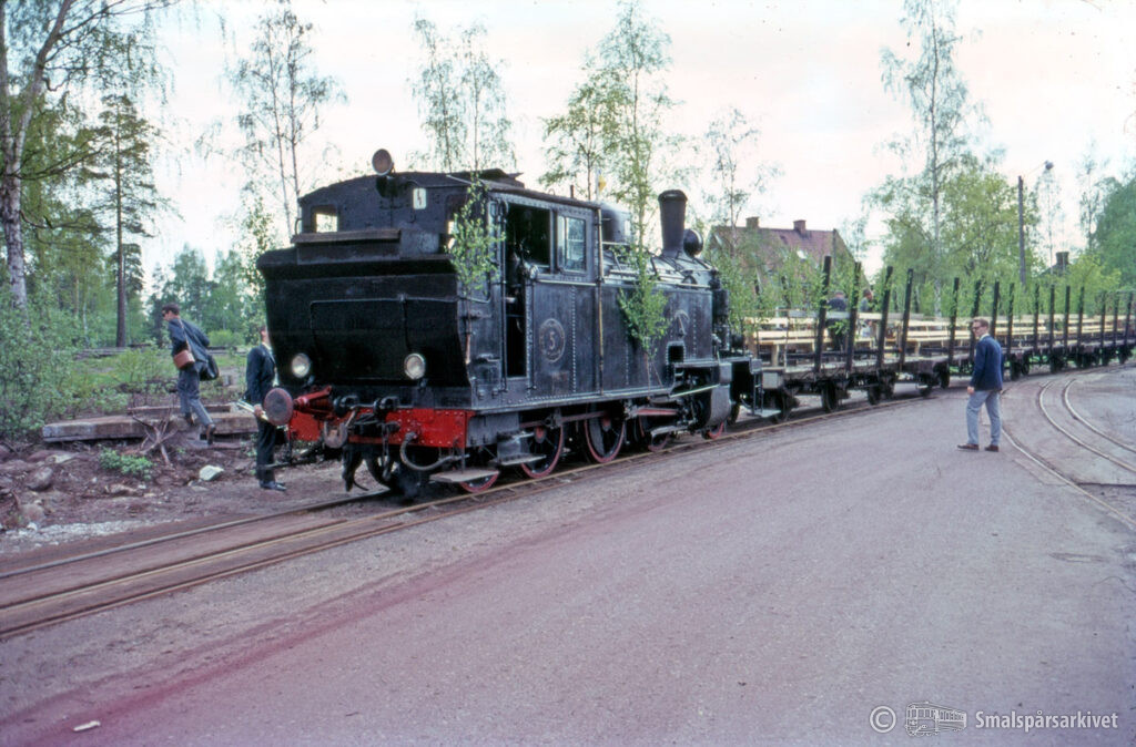 SJK:s utfärdståg med ånglok Marma-Långrör 5 (f.d. NÖJ 16 / SJ N6p 3163) vid bruket i Vallvik.