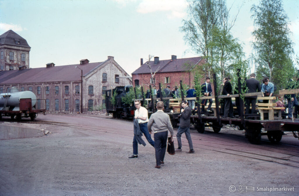 SJK:s utfärdståg med ånglok Marma-Långrör 5 (f.d. NÖJ 16 / SJ N6p 3163) vid bruket i Vallvik.