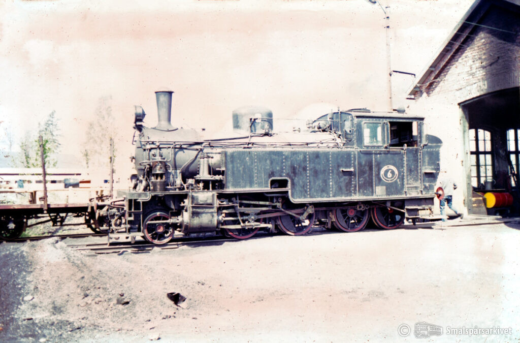 Ånglok Marma-Långrör 6 (f.d. NÖJ 15 / SJ N6p 3162) vid lokstallet i Vallvik.