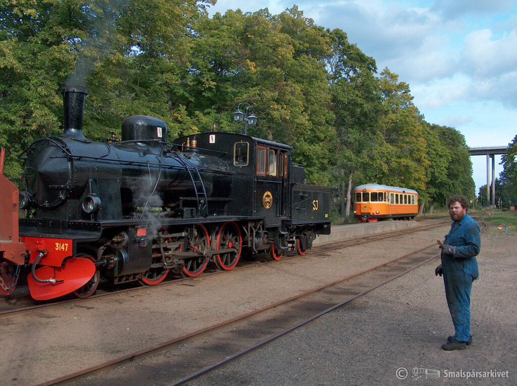 SJ L18p 3147 (NVHJ 22) och YP 884 i Verkebäck. Till höger Robert Karlsson.